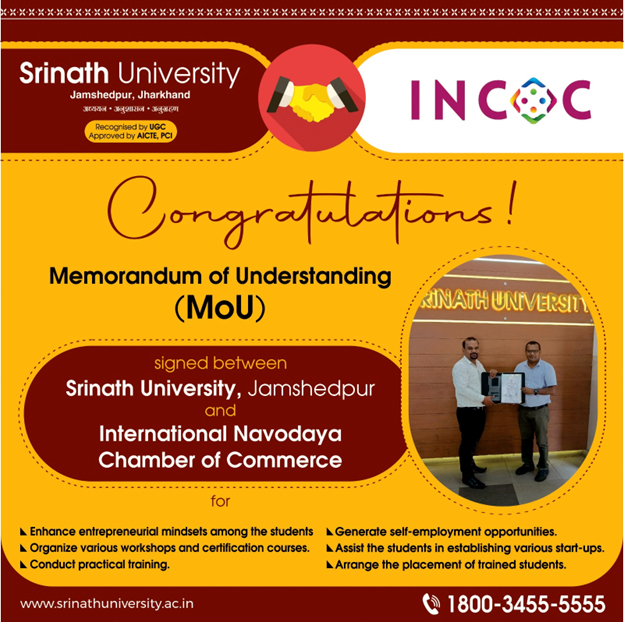 Srinath University in Jamshedpur actively fosters entrepreneurship among its students through various initiatives and collaborations. Here’s an overview of the entrepreneurship-related activities and opportunities available at the university: