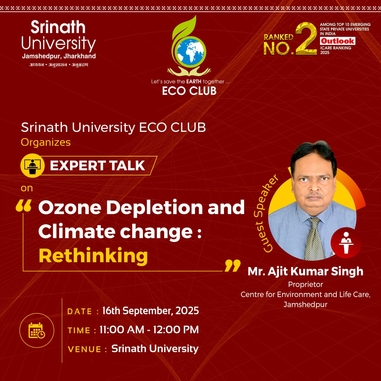 The Eco Club is organizing an Expert Talk on 16th September, 2025. Attendance is mandatory for all students.