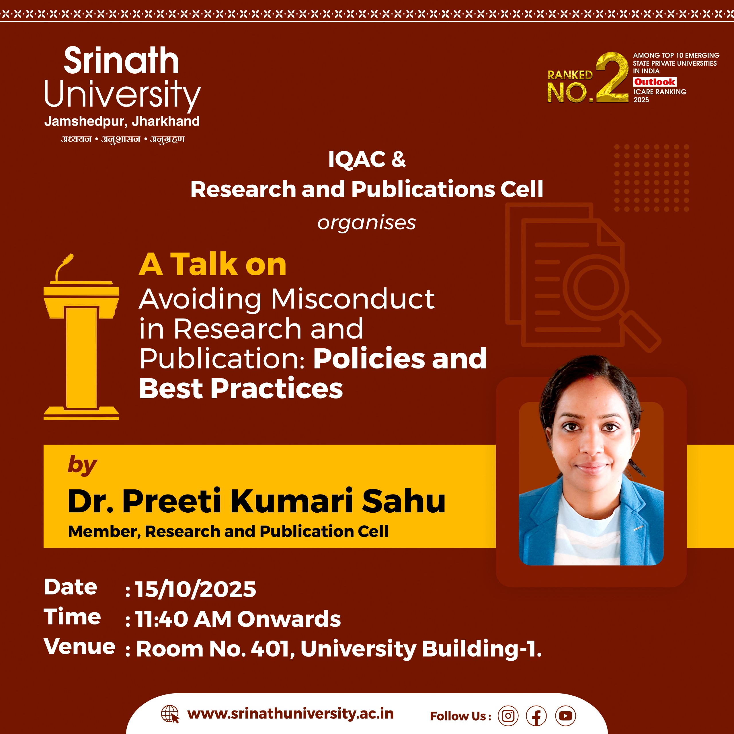 A Talk on Avoiding Misconduct in Research and Publication: Policies