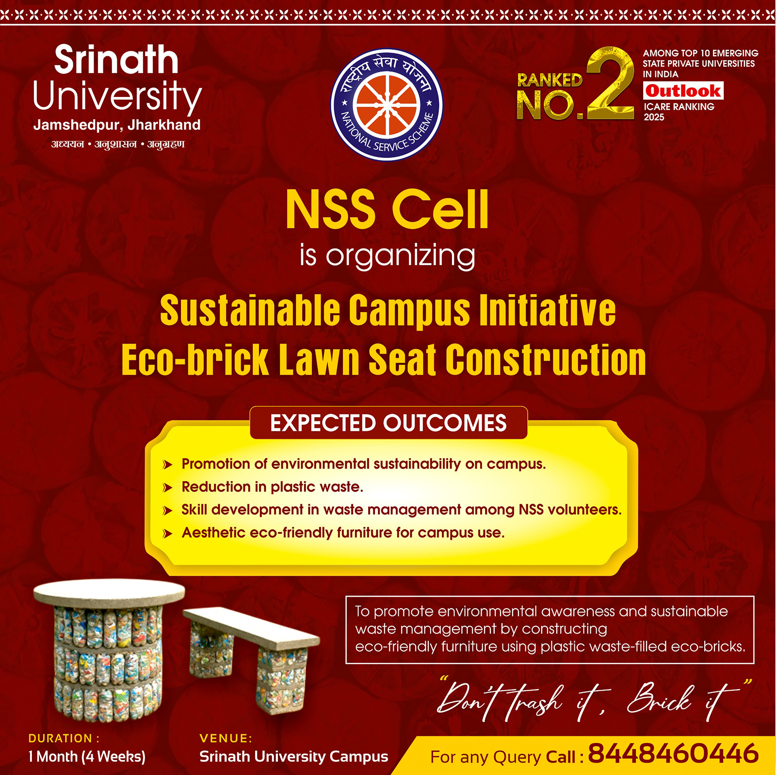 Sustainable Campus Initiative Eco brick Lawn Seat Construction
